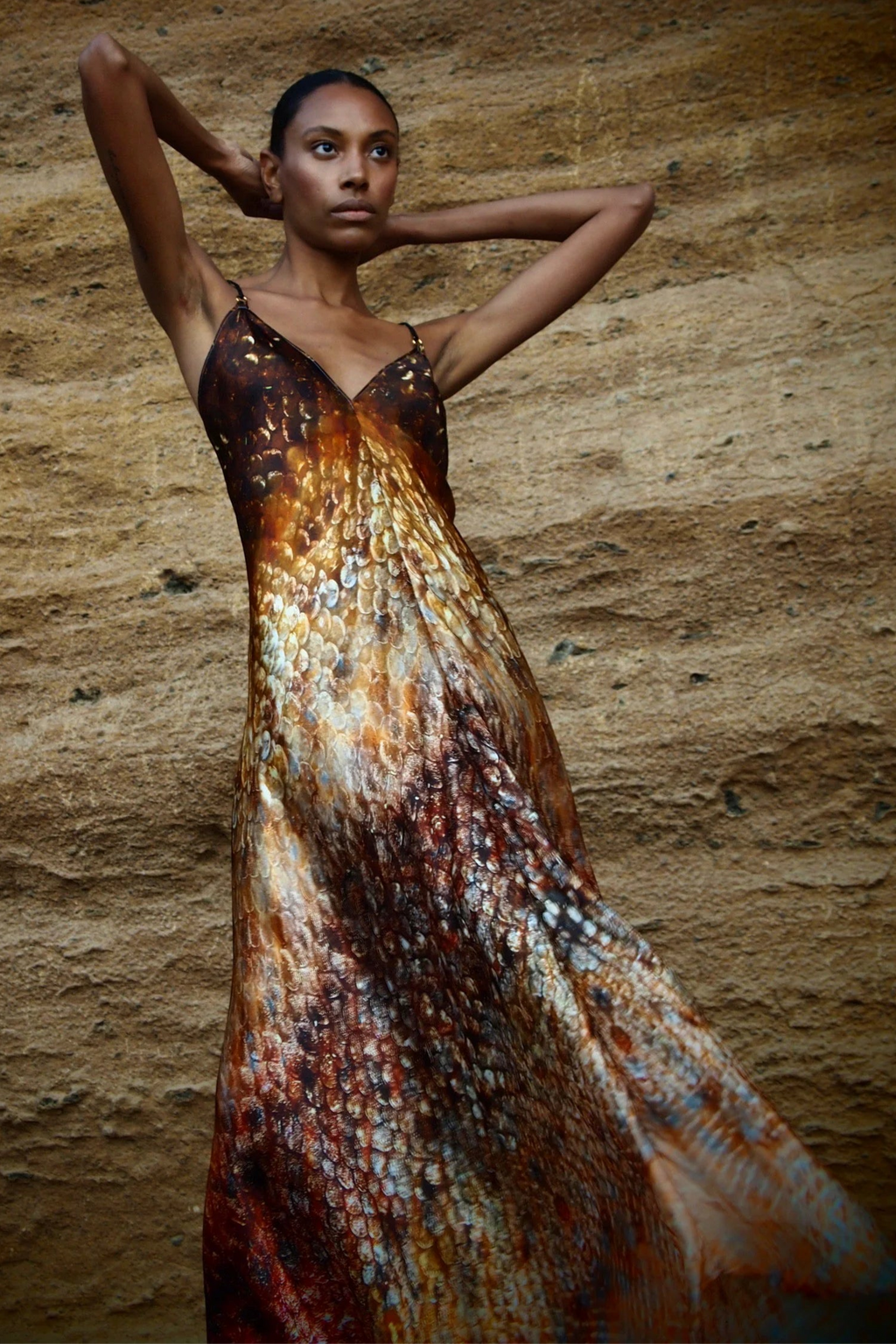 Mona Swims is a resort clothing brand handmade in Ireland that combines intricate prints, expert craftsmanship, and a unique surreal aesthetic. All prints are designed by founder Carla Johnson, an award-winning textile artist. The collections are influenced by a mysterious world - a land of icy seas, rough tides, desolate beaches, and dramatic rugged coastlines. Drawing inspiration from the complex beauty of marine life around the world, from the depths of the oceans to the rivers of the Amazon, to create vibrant and abstract prints, shiny fish scales, wet sand, and iridescent lightning - all in an almost monochromatic color palette